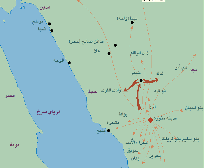 - ↑ امتاع الاسماع، ج۱، ص۳۲۵.